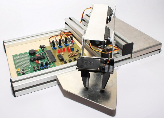 In dem Projekt „Programmierung eines Roboterarms“, ging es um die Programmierung und Ansteuerung eines Roboterarms, den wir in der Unterstufe schon angefertigt hatten. Das Hauptproblem stellte die Ansteuerung dar, denn diese musste für die geplante umfangreiche Funktionsweise speziell ausgelegt werden. Dies erreichten wir durch das planen und anfertigen einer separaten Platine mit einer Schaltlogik und Bedienelementen.