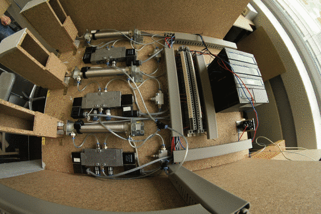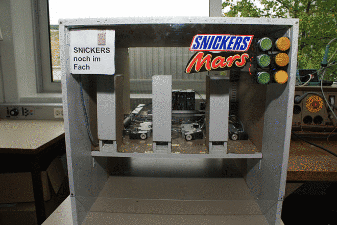 Der Automat enthält drei Fächer, die mit Schokoriegeln gefüllt sind, welche per Knopfdruck mit einem pneumatischen Kolben herausgedrückt werden. Die 7–Segmentanzeige zeigt an wie viele Schokoriegel noch im jeweiligen Fach sind. Wenn das Fach des gewünschten Riegels leer ist, zeigt die 7-Segmentanzeige „0“ und eine Lampe leuchtet. Anschließend muss man die Fächere nachfüllen und die Segmentanzeige durch die Resettaste, Reseten.