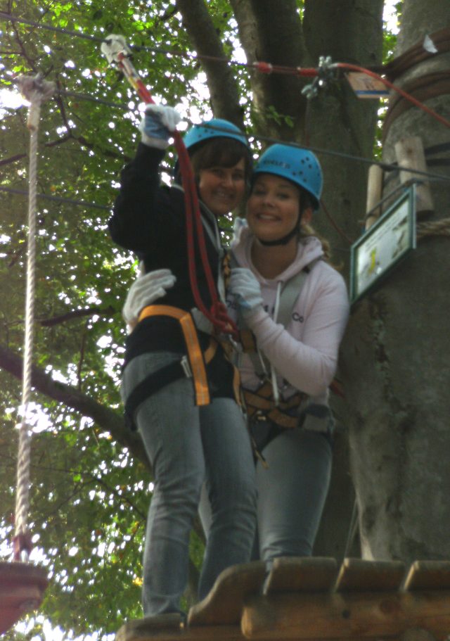 Der außergewöhnliche Wandertag ist ein Erlebnis in der Natur und trägt zur Festigung der Klassengemeinschaft bei. Der Kletterwald bietet physische und psychische Herausforde-rungen. Die Schülerinnen und Schüler lernen sich und einander aus einer anderen Perspektive kennen und können ihre sportlichen Fähigkeiten und Fertigkeiten unter Beweis stellen. Auch das Miteinander wird groß geschrieben: Teamarbeit, gegenseitige Motivation und Unterstützung und Hilfestellung sind unabdingbar. Die Intensität dieser "challenge" kann durch die unterschiedlich schwierigen Parcours in 4 verschiedenen Höhen gesteuert werden.