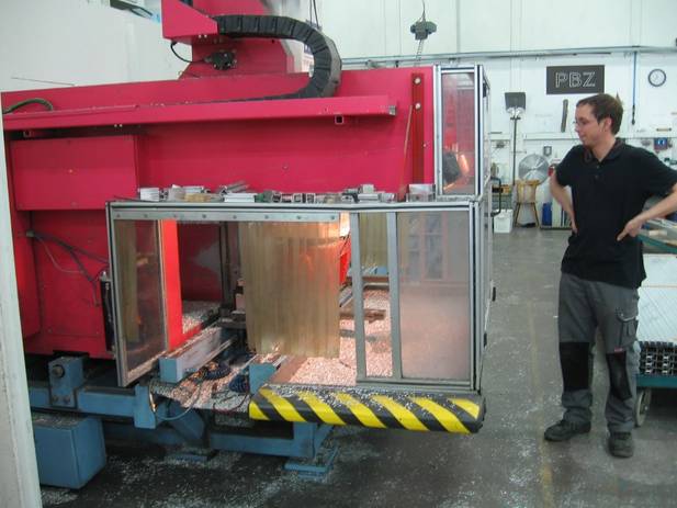 An der CNC Fräse werden Aluminiumteiel nach Kundenwunsch gefertigt