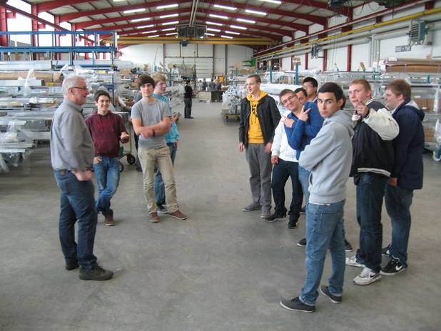 Durch einen Schüler der BF1 E 11, dessen Vater bei der Firma alutechta in Kirchberg arbeitet, kam der Kontakt in das Personalbüro zustande. Dort war man sehr an den Schülern der BBS Bingen interessiert und schnell war ein Termin ausgemacht. Am 24. April war es dann soweit. Per Bus, den der Förderverein als Dankeschön für die großartige Hilfe bei unserem Tag der offenen Tür gesponsert hatte, ging es nach Kirchberg zu der Firma alutechta. Begleitet wurden die Schüler auf der Exkursion von Herrn Anna und Herrn Leiske.