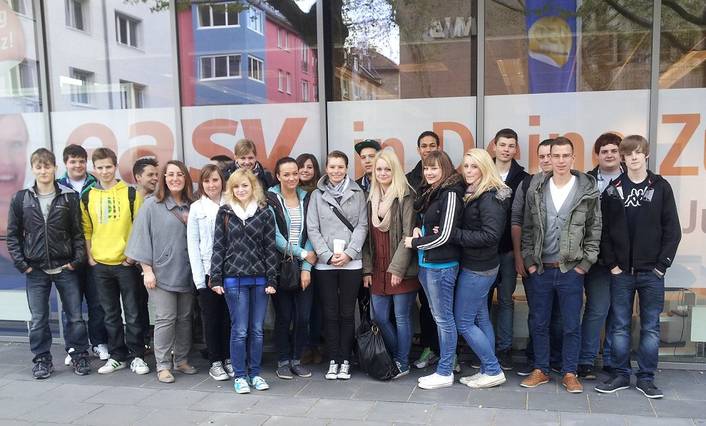 Die Klasse HBFO11B vor der Mainzer Volksbank