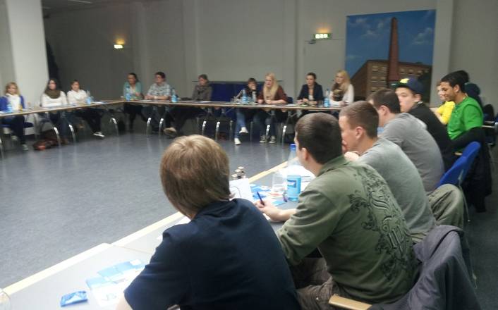 Wir trafen uns um 9.00 Uhr vor der Jugendfiliale der MVB in der Nähe des Neubrunnenplatzes mit Fr. Bara. Zwei Azubis begrüßten uns und führten uns in den Eingangsbereich. Der Kicker und die vielen Sitzecken ließen uns vergessen, dass wir in uns in einer Bank befanden. Nach einer kurzen Einführung gingen wir in die Seminarräume, in denen der Workshop stattfand. Isabel Matheis, Daniela Jakobs und Elena Pauli sind Azubis in der MVB und übernahmen die Leitung des Workshops. Sie gaben uns zu Beginn Hinweise, was bei einer Bewerbung beachtet werden sollte. Als Anschauungsmaterial erhielt jeder Teilnehmer formale Anweisungen zur Gestaltung des Anschreibens, des Lebenslaufs und des Deckblattes. Es gab genügend Raum um anstehende Fragen zu klären. Sofort danach wurde ein Einstellungstest durchgeführt, der Bankwissen, mathematisches Wissen, politische, wirtschaftliche, kulturelle Bereiche und Geschichte abdeckte. Die Schülerinnen und Schüler konnten nach der Auswertung feststellen, in welchem Gebiet sie persönlich noch Nachholbedarf sehen.