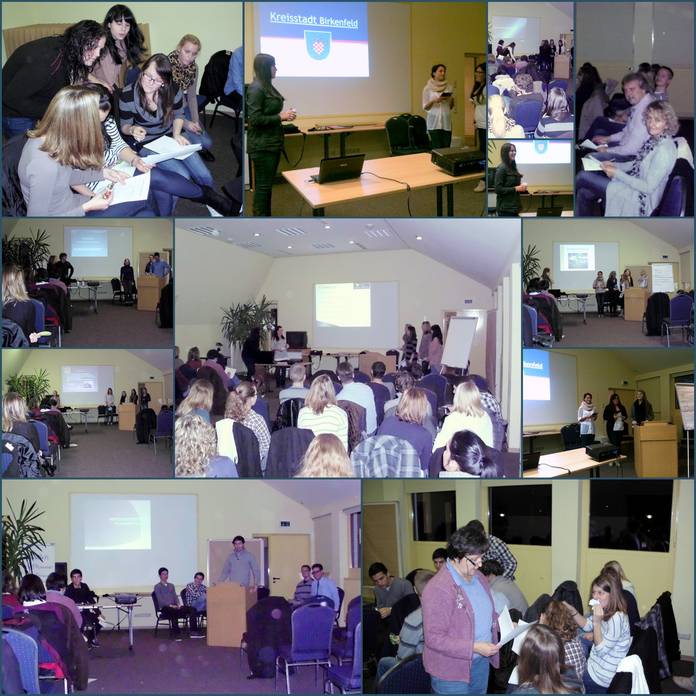 Auch in diesem Jahr war es nun wieder soweit: Die Klassen KfB und IK des zweiten Lehrjahrs hatten die Möglichkeit, sich im Rahmen einer Projektwoche in der Kunst des Präsentierens zu üben bzw. diese von Grund auf zu erlernen. Die Projektwoche fand vom 27.11.2011 – bis zum 02.12.2011 im Ferienpark in Hambach statt. Die Schüler arbeiteten gruppenweise im Selbstlernkonzept und lernten und trainierten im Team das Präsentieren verschiedener Themen. Ziel und Rahmen dieser Woche bildete dabei die Erstellung einer Abschlusspräsentation, welche am letzten Abend der gemeinsamen Woche in Anwesenheit der extra dafür angereisten Ausbilder aus den Betrieben gezeigt werden sollte. Entsprechend hoch war die Motivation der Schüler, eine gelungene und ansprechende Präsentation ihres Themas zu zeigen. Natürlich kam in dieser Woche auch das gesellige Zusammensein nicht zu kurz: ein gemeinsamer Bowlingabend und andere Ausflüge boten auch Raum für Entspannung und Abwechslung im gar nicht so harten Arbeitsalltag der Präsentationskunst. Am letzten Abend war es dann soweit: viele Ausbilder der Betriebe waren angereist, um den Abschlusspräsentationen beizuwohnen und damit den Lernerfolg ihrer Schützlinge zu begutachten. Ausbilder und Lehrer gaben den jeweiligen Gruppen ein Feedback, sodass den Schülern eine Perspektivenvielfalt an Rückmeldungen zu Teil wurde. Sowohl die angereisten Ausbilder, als auch die betreuenden Lehrer sowie die Schüler selbst waren mit der Qualität der gezeigten Präsentationen sehr zufrieden und der in dieser Woche erzielte Kompetenzzugewinn war an diesem Abend sehr deutlich durch die entstandenen Ergebnisse dokumentiert. So ging eine sehr arbeitsintensive und in jeder Hinsicht lehrreiche Woche zu Ende, von welcher die Schüler sicherlich sehr nachhaltig profitieren werden.