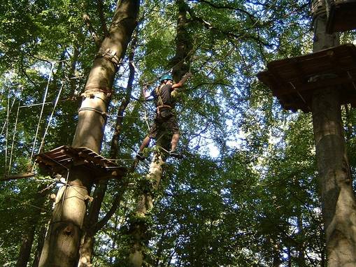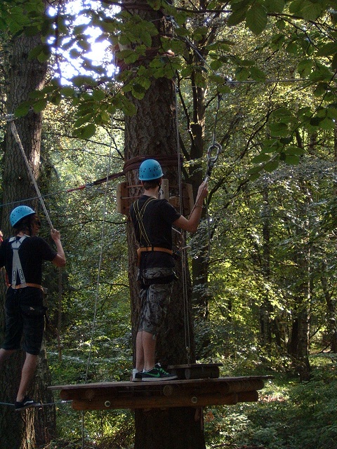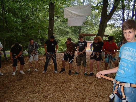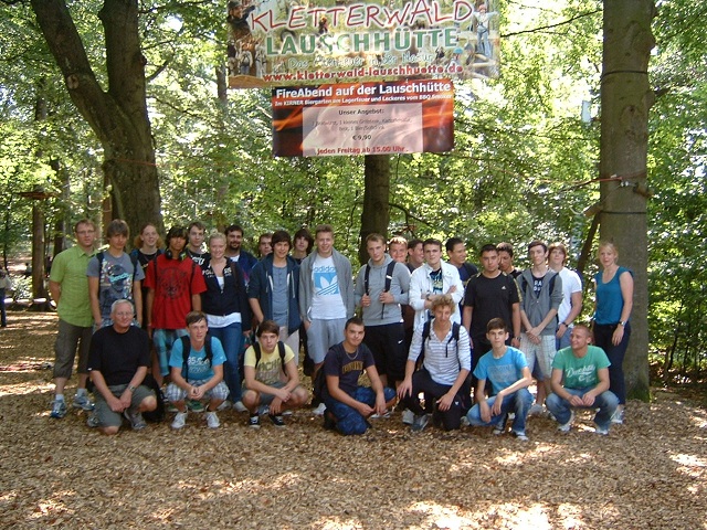 Zum Kennenlernen fuhren wie am Mittwoch, dem 17.08.11 in den Kletterpark „Lauschhütte“. Nach einer etwas verregneten Hinfahrt hielt uns das dichte Blätterdach des Kletterparks jedoch richtig trocken.