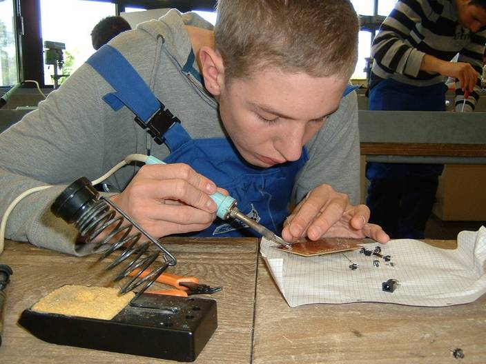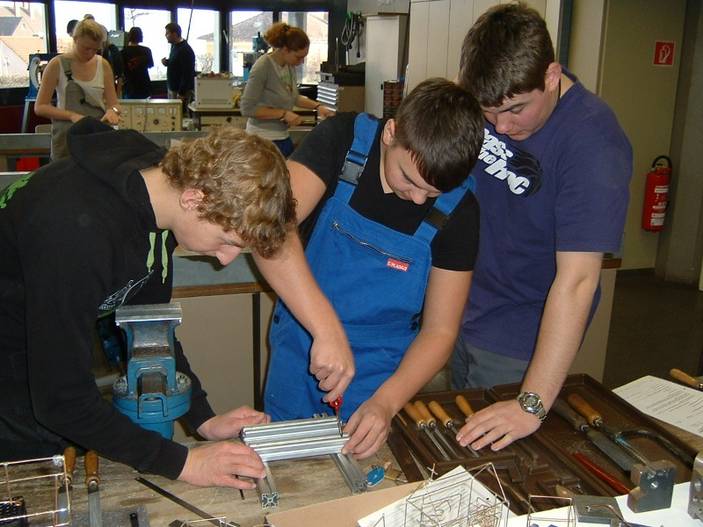 Bei diesem Projekt waren verschiedene Techniken wie Feilen, Bohren und Sägen gefordert. Man musste mit unterschiedlichen Materialien zurecht kommen und die geeigneten Platzierungen der Bauteile herausfinden. Allerdings waren auch Geschicklichkeit und Teamarbeit gefragt, wie zum Beispiel beim Befestigen des Greifarms, was allein fast unmöglich war.