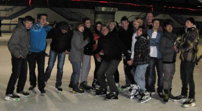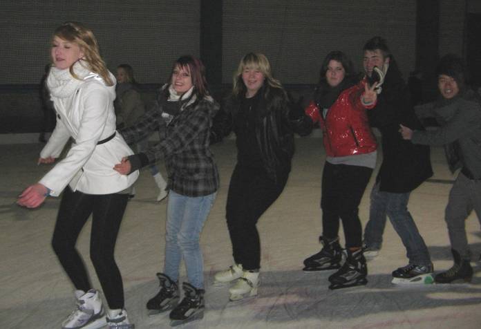 Der Winter lässt zwar auf sich warten, aber die Schülerinnen und Schüler der BF2E/W 11 haben schon mal ein bisschen Kälte schnuppern können. Sie verlegten mit ihrem Sportlehrer Herrn Bara den Sportunterricht am 16.12.2011 in die Eissporthalle nach Mainz. Zusammen mit vielen anderen gleichaltrigen Besuchern drehten sie bei fetziger Diskomusik ihre Runden und hatten dabei viel Spaß, was man auf den folgenden Bildern sehen kann.