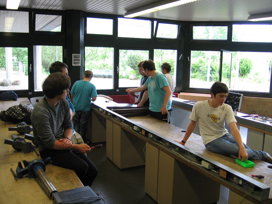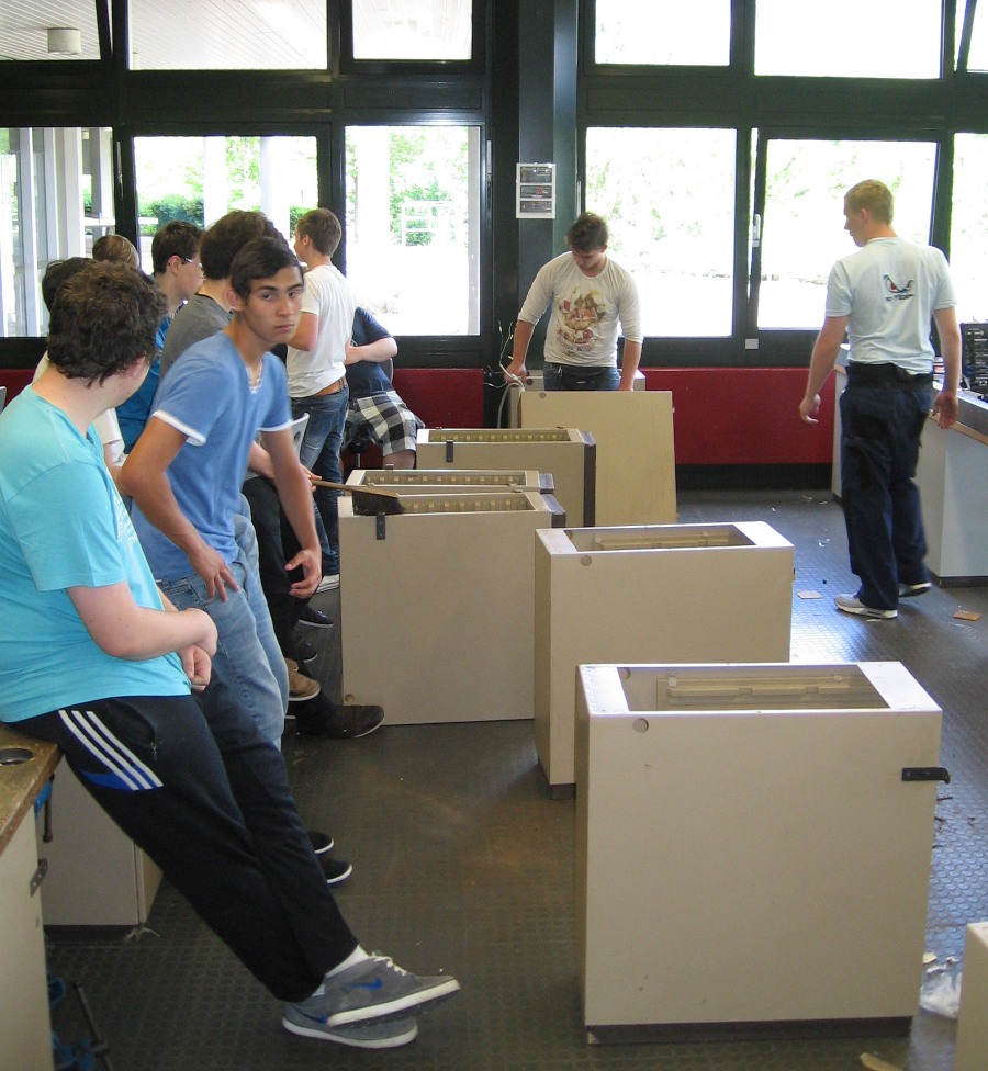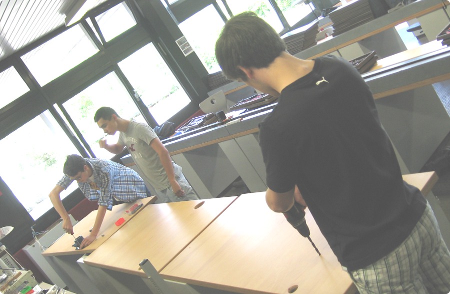 Nun konnten die Schüler die neuen Arbeitsplatten und den Kabelkanal montieren und alles wieder in Betrieb nehmen.