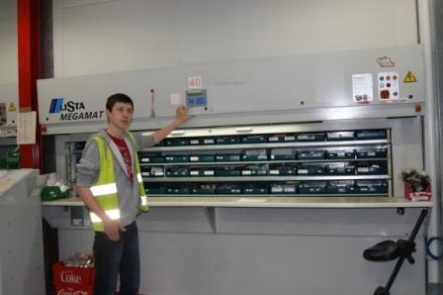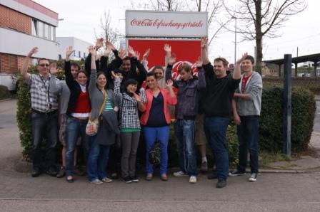 In Mainz-Mombach befinden sich Lager und Reparaturhalle, in der Getränkeautomaten und Kühlschränke der Coca Cola GmbH aufpoliert und wieder in Gang gebracht werden. Die Geräte werden Restaurants, Imbissbuden, Kantinen und Schulen zur Verfügung gestellt, damit die Kunden die bekannten Getränke immer eisgekühlt genießen können. Sobald ein Gerät einen Schaden erleidet, wird es ausgetauscht und in Mainz von Technikern repariert. Die Schüler staunten nicht schlecht, als sie durch die zahlreichen Reihen mit noch zu reparierenden Geräten geführt wurden. Fast 3.000 Automaten warten hier auf ihre Instandsetzung. Diese und noch viele weitere technische und organisatorische Details stellte der Auszubildende der Coca Cola GmbH, Florian Brückbauer, seinen Mitschülern dar. Er erläuterte fachkompetent Aufbau und Funktion von Automaten und stellte stolz seinen Arbeitsplatz vor. Natürlich durften Kostproben der erfrischenden Getränke nicht fehlen, es sollte kein Schüler durstig nachhause gehen. Die jungen Auszubildenden zeigten sich begeistert von den Einblicken in die Erfolgsgeschichte von Coca Cola, die mit einer zufälligen Entdeckung eines Apothekers begann und zu einem Weltkonzern gewachsen ist.