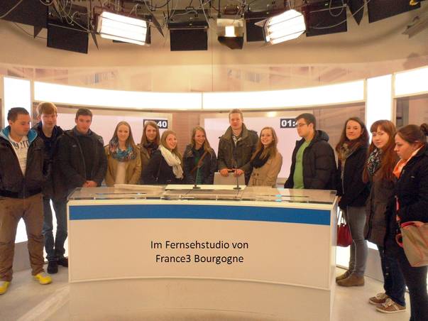Die viertägige Reise war auch dieses Jahr mit einem vollen Programm versehen, für dessen Inhalte und Organisation wir den französischen Kolleginnen, allen voran Mme Grondin, herzlich danken. So haben wir u.a. mit den französischen B.T.S.-Studenten eine Erkundung der beeindruckend schönen Stadt Dijon unternommen. Die Behinderungen und Baustellen durch den Bau der neuen Straßenbahn sind Vergangenheit und die Stadt vermittelt die in Frankreich häufig zu findende wohltuende Melange aus Tradition und Moderne. In Dijon haben wir außerdem eine Betriebsbesichtigung eines führenden Herstellers für Melkroboter unternommen und die Fernsehstudios von France 3 besucht. Als Highlight empfanden alle den Besuch im „Cassissium“ in der Binger Partnerstadt Nuits-Saint-Georges. Im Cassissium wurde uns die Geschichte und Herstellung des schwarzen Johannisbeerlikörs (Cassis) aufgezeigt, und eine Verkostung gab es auch. Im Lycée Montchapet wurden wir vom Schulleiter, Monsieur Gey empfangen, durften am Unterricht teilnehmen und das Mensa-Essen genießen.