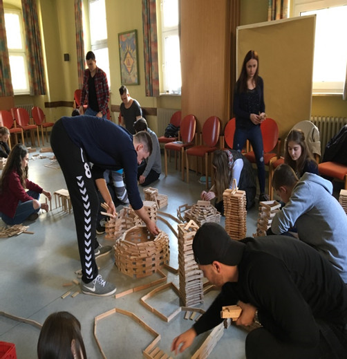 Der erste Tag stand ganz im Zeichen umfassender Teambuildingmaßnahmen, die Auszubildenden lernten in interaktiven Spielen wie z. B. Bau einer ganzen Stadt mit ca. 8000 Bausteinen und zahlreichen Gebäuden und Straßenverbindungen, im Team zu agieren, offen zu sein für die Ideen der anderen, sich einzubringen, aber auch seine eigenen Vorstellungen zu verwirklichen. Auch der Spaßfaktor kam nie zu kurz, so wurden zwei Schüler in einen Turm aus Holzklötzchen durch ihre jeweilige Gruppe „eingebaut“. Weitere Spiele, z. B. stilles Schach oder eine besondere Stadtralley rundeten diesen Tag im Sinne des Teamgedankens erfolgreich ab.