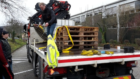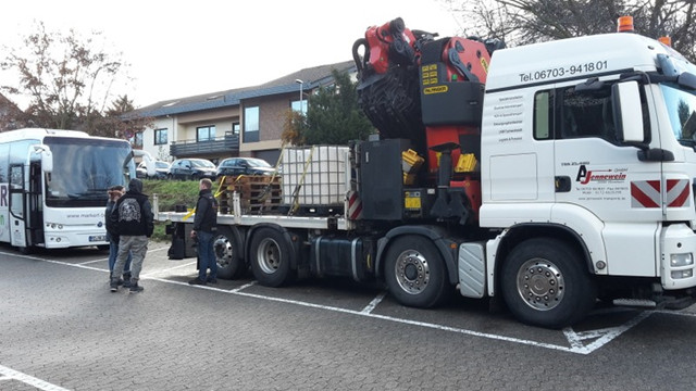 Zu diesem Zweck wurde der Schülerparkplatz am 10. Dezember 2018 von 9.30 bis 11.00 Uhr gesperrt und Jürgen Domann von MARKERT Busreisen und Markus Jennewein von der A. Jennewein GmbH unterstützten diesen Tag mit Manpower und Fahrzeugen.