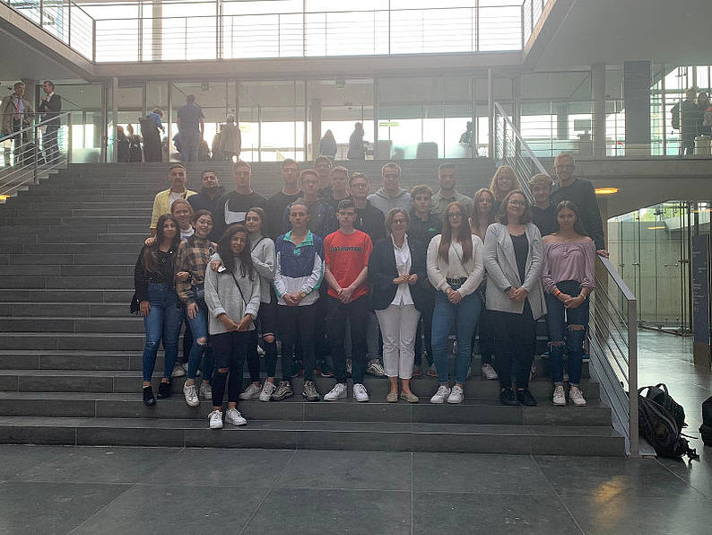 Die Schüler im Bundestag mit Frau Groden-Kranich, Abgeordneten des Bundestags.