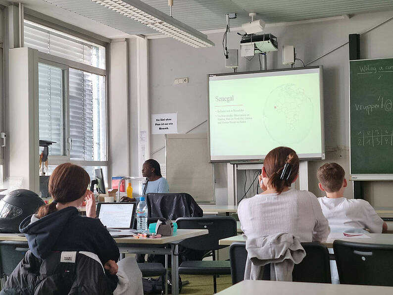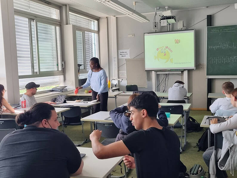Frau Yayas Soce Faye, eine 27-jährige Studentin der Johannes-Gutenberg-Universität, hat sich am 21.06.22 gemeinsam mit den Schülerinnen und Schülern der HBFW21a, ihrer Lehrkraft Susan Tenruh und Referendarin Laura Streit der Frage gewidmet, „Woher kommen eigentlich die tropischen Früchte, wie z.B. Mangos, aus unseren deutschen Supermärkten?“ Dabei wurde über die globalen Handelsketten und deren Folgen auf Mensch und Umwelt gesprochen. Die Schülerinnen und Schüler sollten selbstständig überlegen, wie man diesen Folgen, bspw. durch Veränderung in den Lieferketten oder dem eigenen, bewussten Kaufverhalten entgegenwirken kann. Ein wichtiger - und gleichzeitig einfach zu beachtender - Faktor, den wir als Konsumenten beim Kauf von Mangos berücksichtigen sollten, ist die Kennzeichnung mit einem Fair-Trade-Siegel. Studierende aus dem globalen Süden bieten Lerneinheiten an, um für die Agenda 2030 zu sensibilisieren. Danke an den World University Service für die Kontaktbrücke.