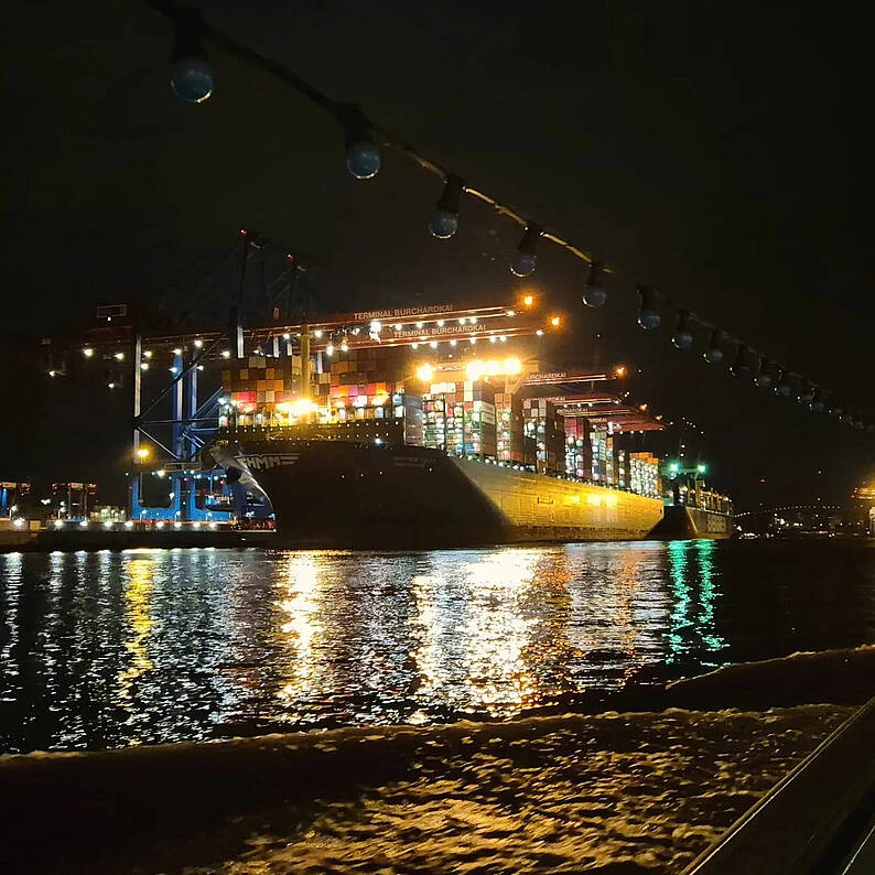 Dann wurde es richtig spannend! In einem Bereich, in dem selbst das Fotografieren verboten ist, sahen wir riesige Containerbrücken, VanCarrier und voll automatisierte Transportplattformen. Fachkundige Guides erklärten uns alle technischen und logistischen Details und beantworteten jede Frage. Zum krönenden Abschluss haben wir nachts im Dunkeln eine „Lichterfahrt“ unternommen. Hierbei sind wir mit einem kleinen Boot über die Elbe Richtung Containerhafen gefahren. Die Skyline Hamburgs und die sich im Wasser spiegelnden Lichter zu sehen, war einmalig. Im Containerhafen angekommen sind wir bis auf wenige Meter an die Containerriesen herangefahren und konnten so die wahren Dimensionen begreifen.