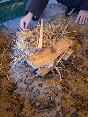 Am Schluss der Führung sind wir noch zu der Feuerstelle gegangen. Dort beschäftigten wir uns etwas mit dem Charakter und der Stuktur des Holzes. Im Anschluss durften wir das Holz stapeln und entfachen.