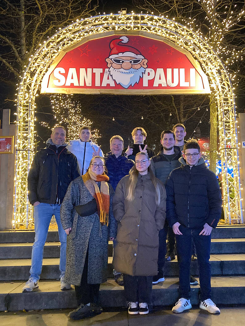Als krönenden Abschluss machten wir mit dem Boot eine Lichterfahrt auf der Elbe. Die Skyline Hamburgs mit den riesigen Hafenanlagen war sehr beeindruckend und rundete unser Logistikprogramm ab. Zum Abschluss besuchten wir alle zusammen die bekannte Astra Brauerei auf dem Kiez und schlenderten anschließend noch über den St. Pauli Weihnachtsmarkt - einen Weihnachtsmarkt der etwas anderen Art.