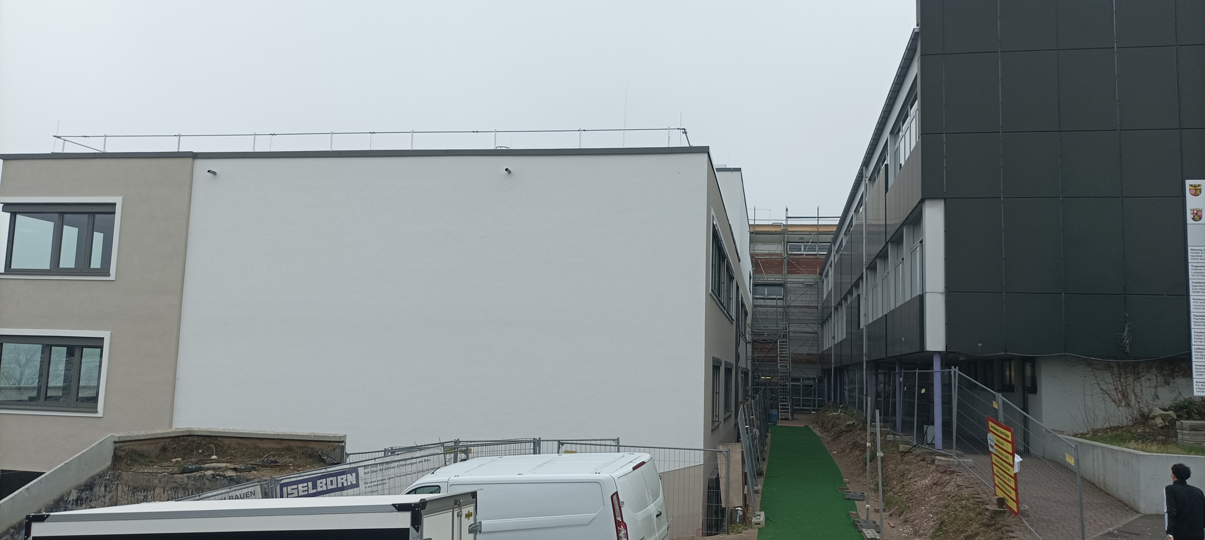 Der große Kran ist aufgestellt und so sah unsere Schule Ende Januar 2022 aus: