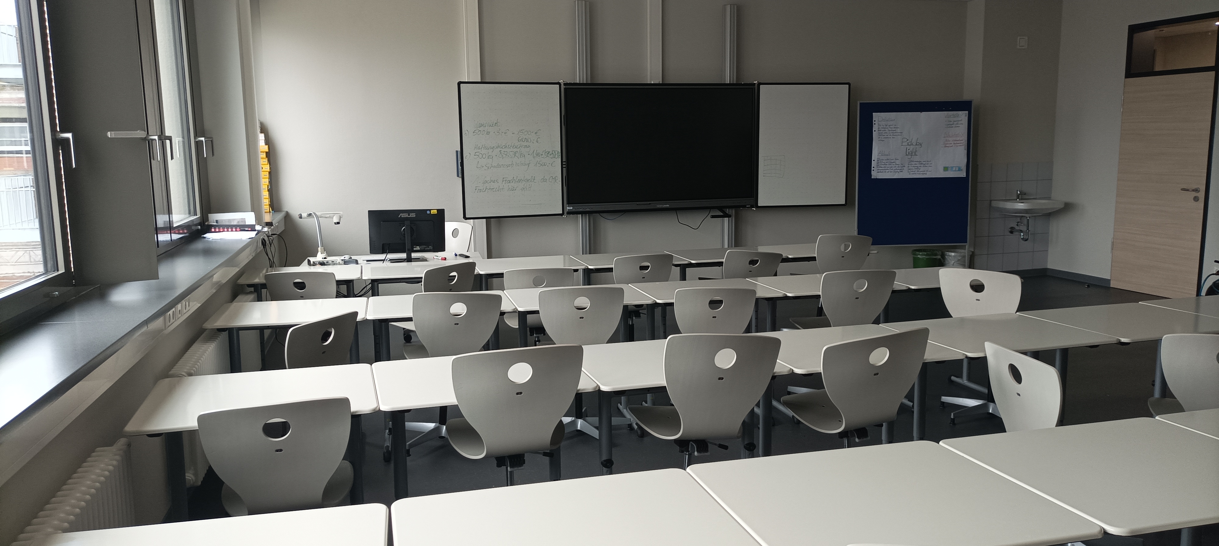 Einer der neuen Klassenräume mit Digitalboard.