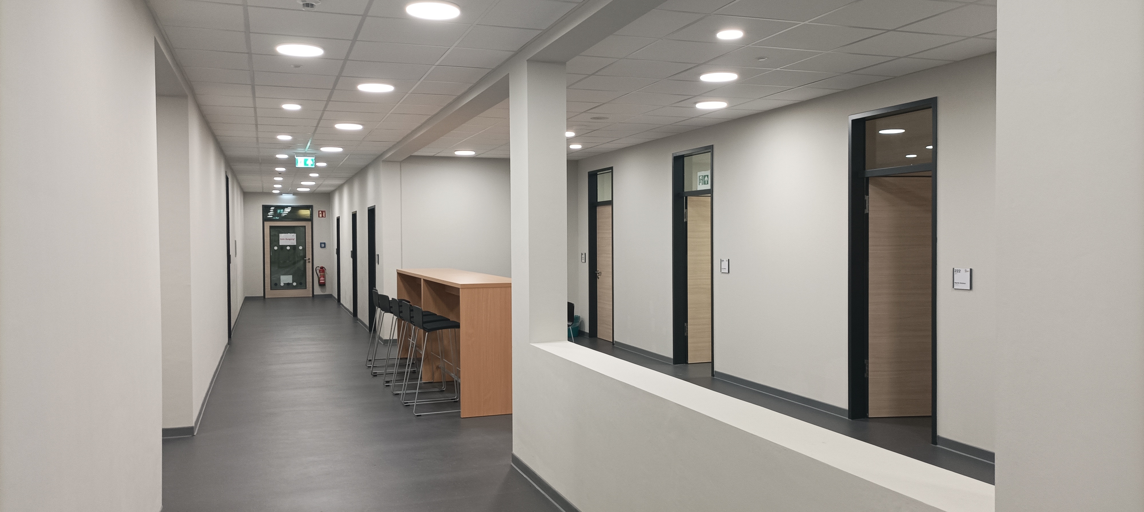 Blick in einen der Flure des Neubaus: