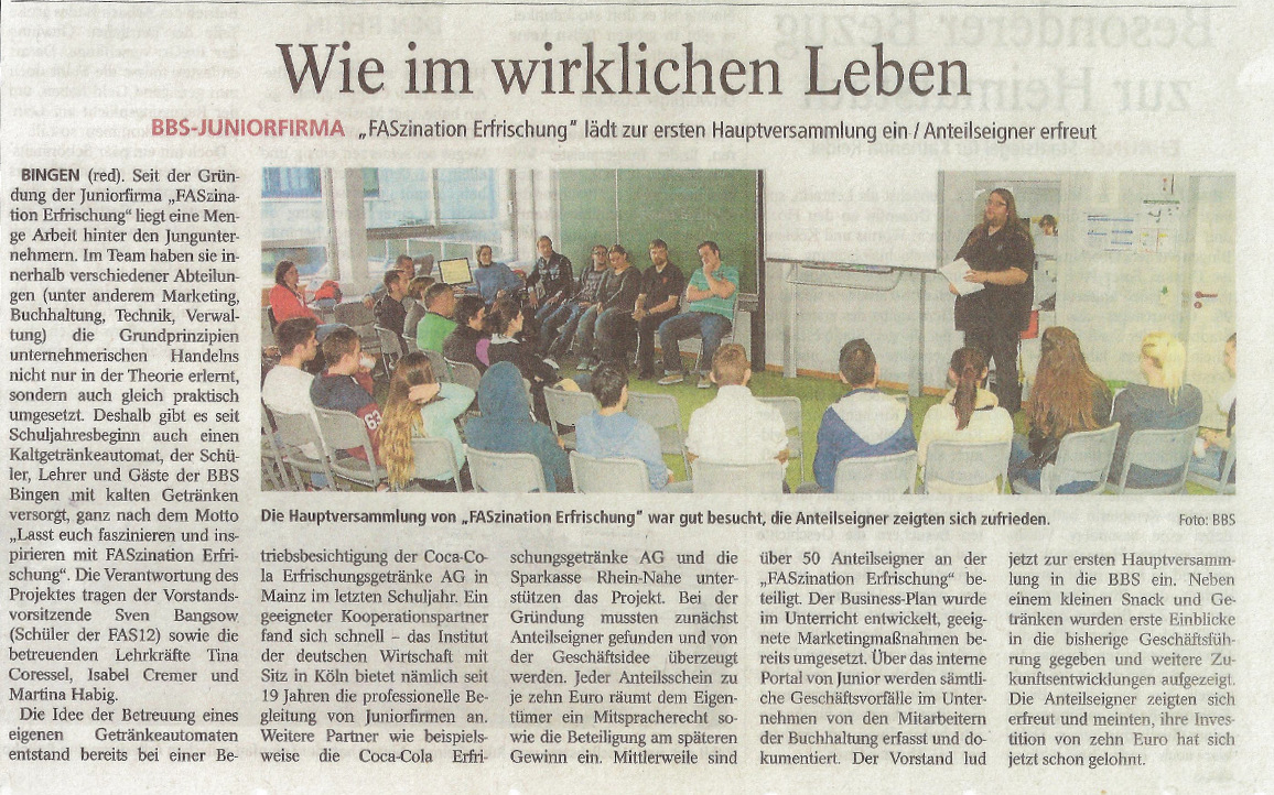 Hauptversammlung der BBS-Juniorfirma "FASzination Erfrischung"